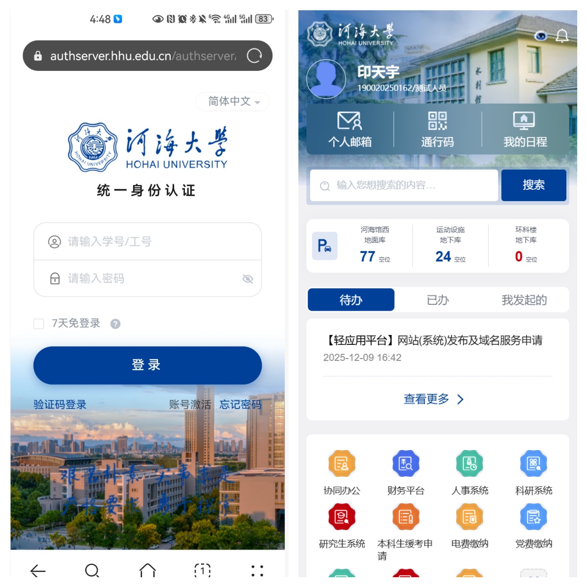 浏览器访问地址:https://mynew.hhu.edu.cn