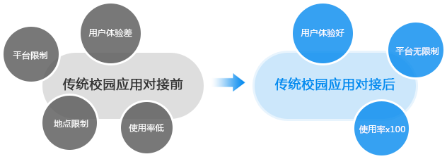 时代在进步,互联网每一天都在改变,传统互联网已经慢慢的退化、蜕变,而移动互联网由于他的便捷、没有时间和地点限制,已经成为了新的潮流。而传统学校的信息化建设都是以传统互联网为根本,目前已经不能够跟上时代潮流,也不能满足用户的使用需求。