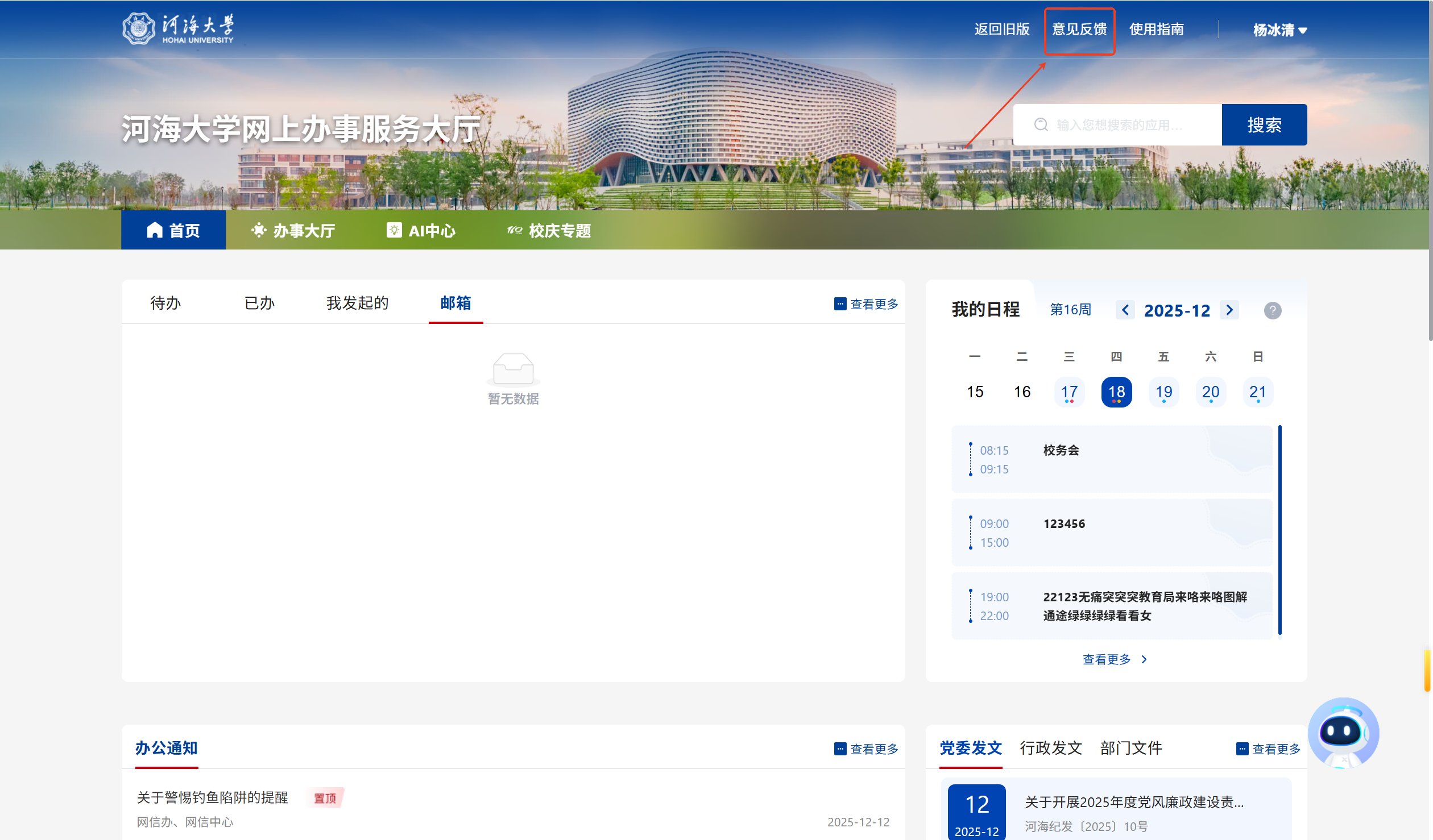 如在使用过程中有什么问题,可拨打网信办统一报修服务热线025-83787582或关注“河海大学网信办”公众号——“网信服务”——“报修平台”反馈。