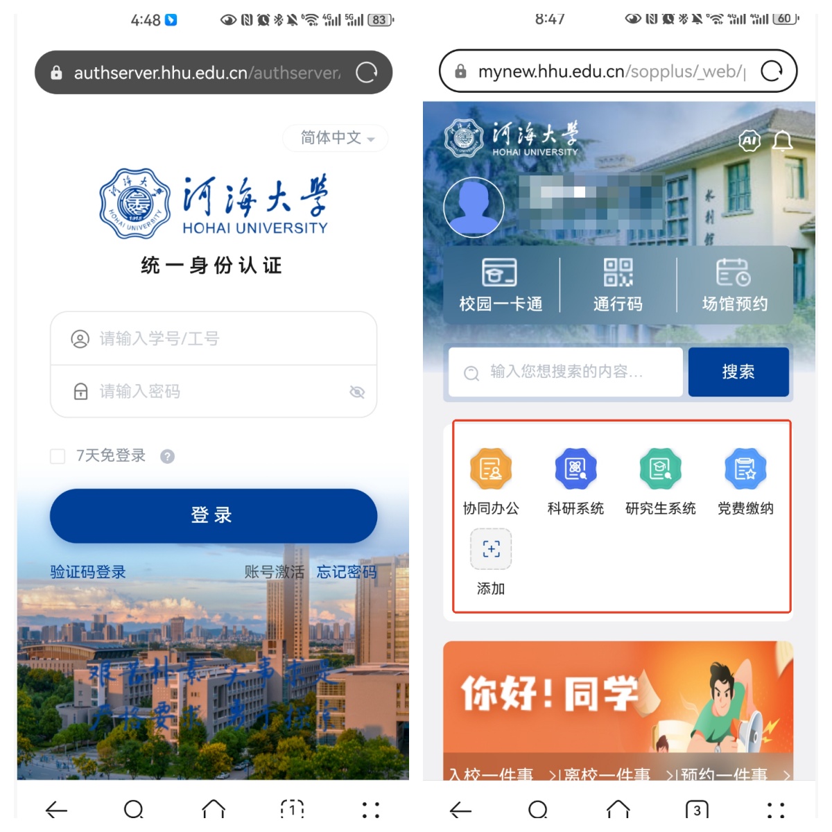 PC浏览器访问地址:https://mynew.hhu.edu.cn