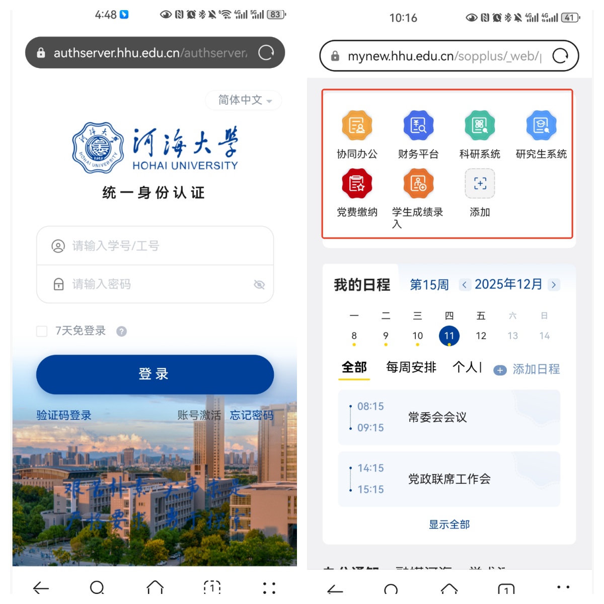 PC浏览器访问地址:https://mynew.hhu.edu.cn